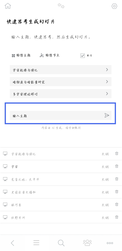 2、输入主题内容,如宇宙大爆炸,点击右侧图标。