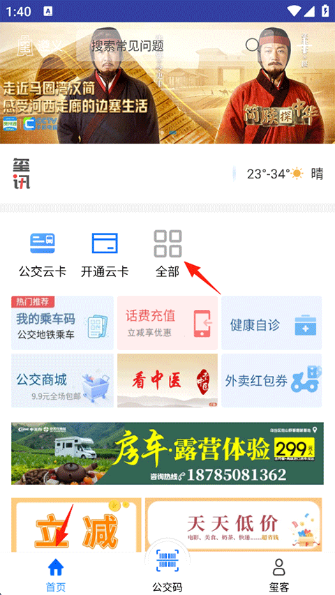 1、打开贵州通APP,点击首页-全部;