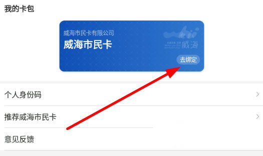 1、在个人中心,我们点击“我的卡包”下的“去绑定”按钮。