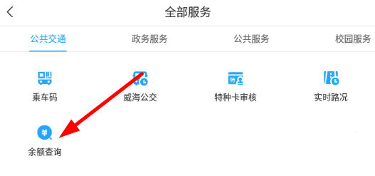 2、接着点击服务列表中的“余额查询”,在其中即可查市民卡余额了。