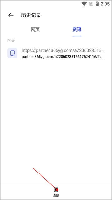 进入历史记录页面后,点击下方的删除键即可清空所有浏览记录,保持隐私安全。