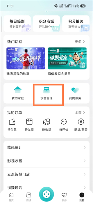 1、进入 App “我的” 页面 → 点击 “设备管理”