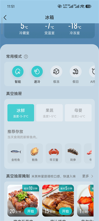 3、冰箱:可进行温度调节、模式选择、等常用模式