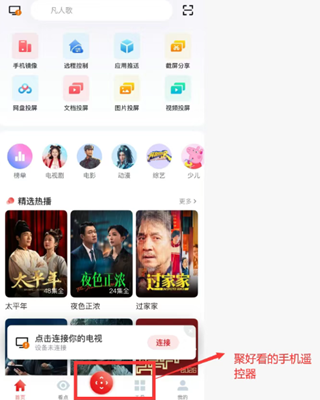 1、首先你搜索微信聚好看小程序,打开来,用微信登录就行了,然后在小程序的最下面有一个红色的图标,这个就是遥控器功能。是聚好看的“手机遥控器”,后面你用手机来操作海信电视机,就需要用到这个功能。