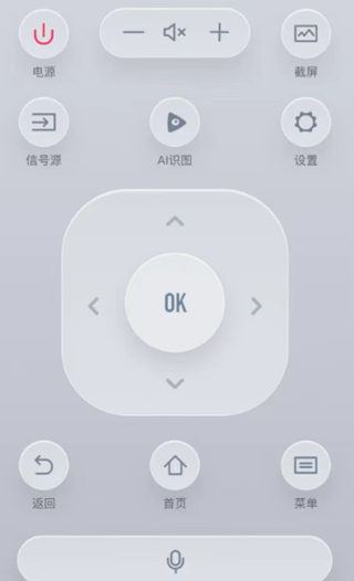 聚好看的APP里面的遥控器操作也是很简单,有信号源选项,也有ai识图,设置,电源、OK按键以及上下左右箭头按键,以及首页、菜单按键等等。