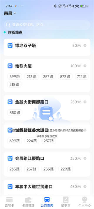 4、公交查询板块则是查询附近的站点,方便我们更好的出行