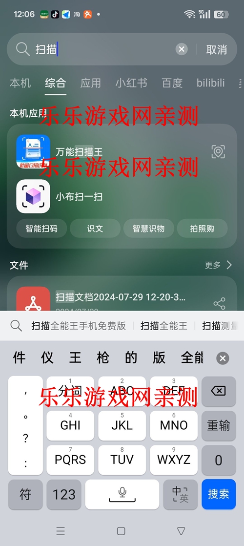 1、手机搜索乐乐游戏网站的“小布扫一扫”
