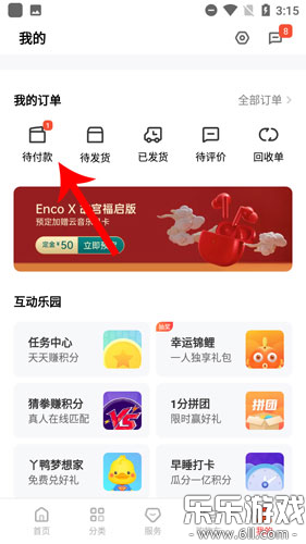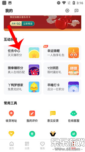 1、首先用户需要点击下方的我的按钮,然后下拉找到互动乐园。