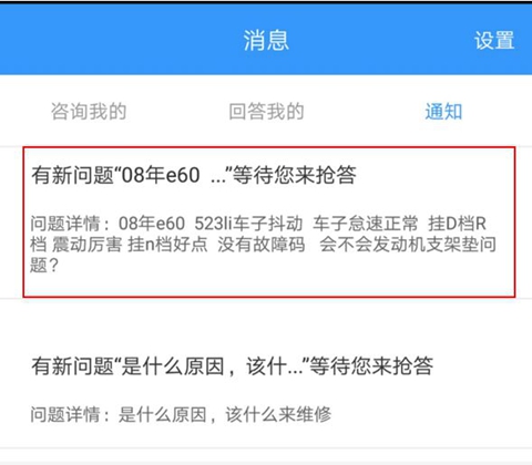 当收到通知后,返回付费问题列表,找到该问题并进行抢答即可。如果在付费问题里面没有看见这个问题,说明该问题已经被其他技师抢答了。建议收到新问题通知后及时跳转到付费问题列表进行抢答,如果不想接收该通知,可以关闭 ②新问题通知 功能。