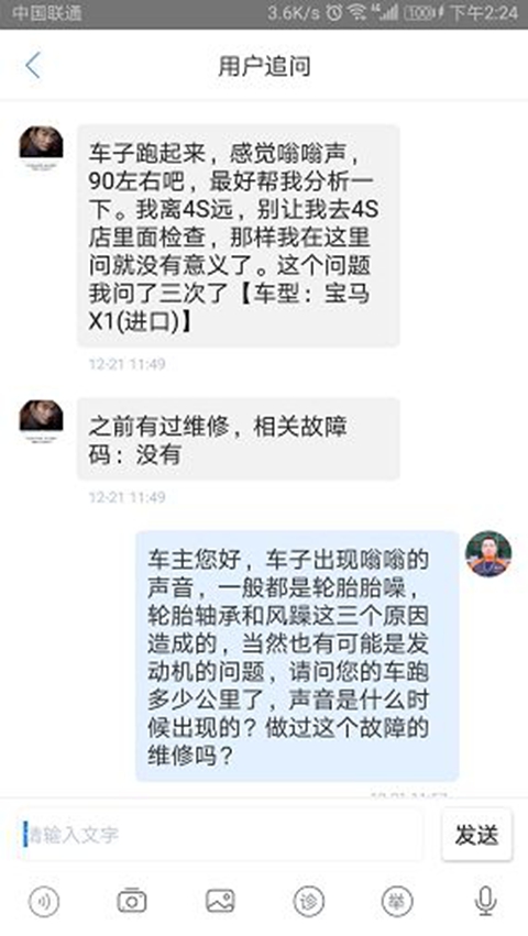 用户在5月3号提的问题,技师在5月4号做出了回答,这时候用户可能已经没有在线了。这是技师做的回复,先询问车辆发生问题时候有没有报警,然后根据用户的描述进行了问题的分析;