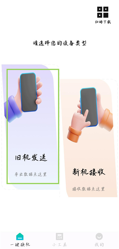 旧手机选择“旧手机发送”或“备份模式”。