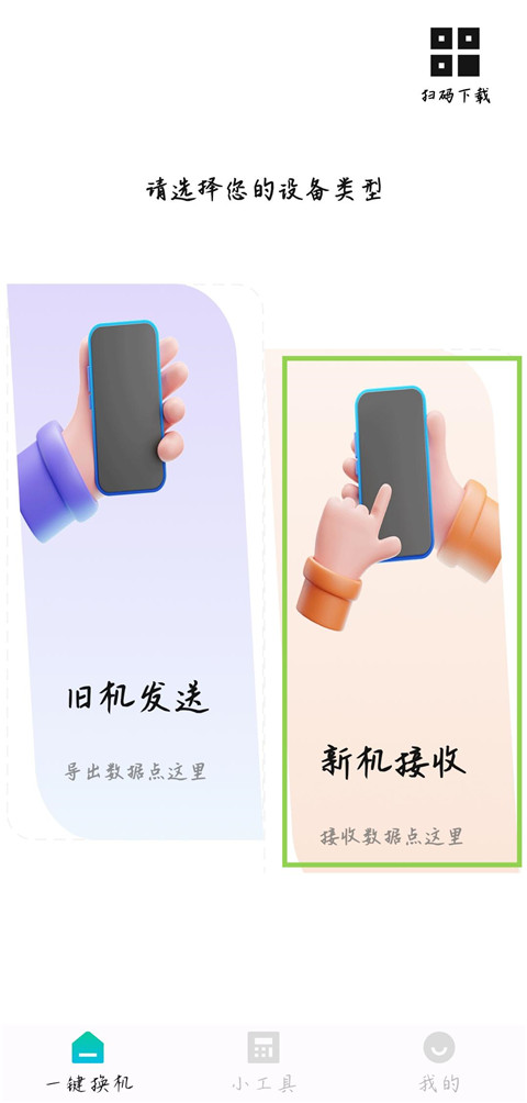 旧手机选择“我是旧手机”,新手机选择“我是新手机”。