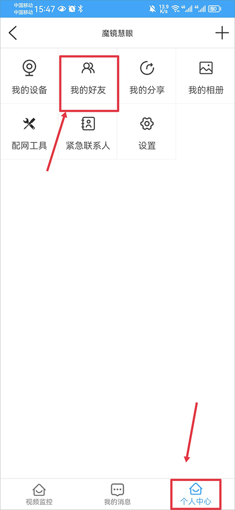 2、然后魔镜慧眼的个人中心界面中点击我的好友