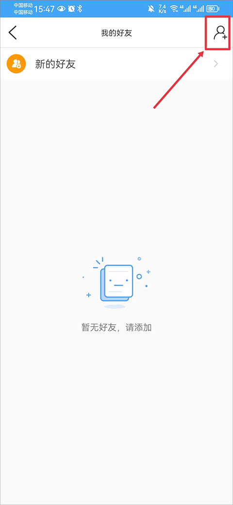 3、进入后点击右上角加好友的图标