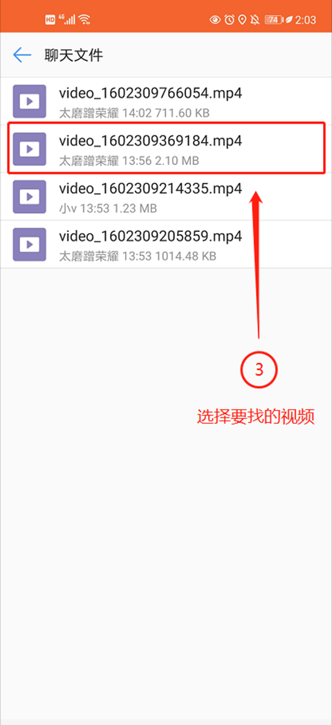 要查找某个视频,你可以通过视频文件列表按时间定位。首先进入发送该视频的会话或群聊,点击任意一个视频,然后点击右上角的按钮即可进入该会话的视频文件列表。在列表中按照时间顺序找到你要的视频,并可以点击预览进行确认。
