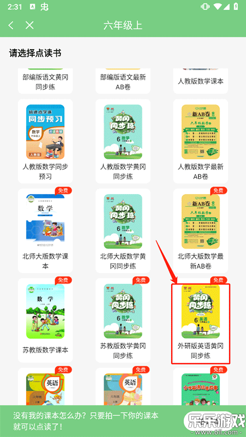 3、例如六年级上册,接着在里面找到外研版课本并添加