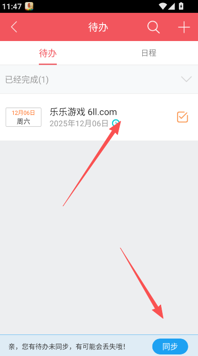 4、完成新建日程待办操作以后,返回刚才的界面,选择同步,同步的目的在于可通过系统消息通知的方式,给到你第一时间提醒。