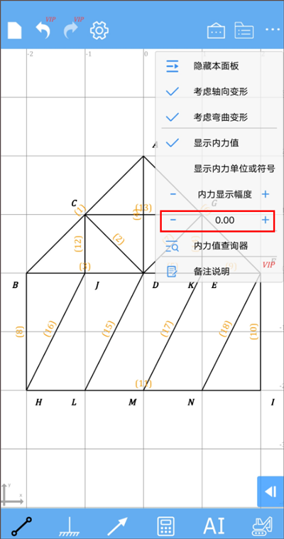 说明:选择某个节点或杆件时的触摸范围,数值越高,节点杆件就越容易被选中。