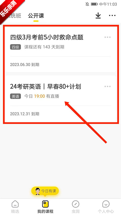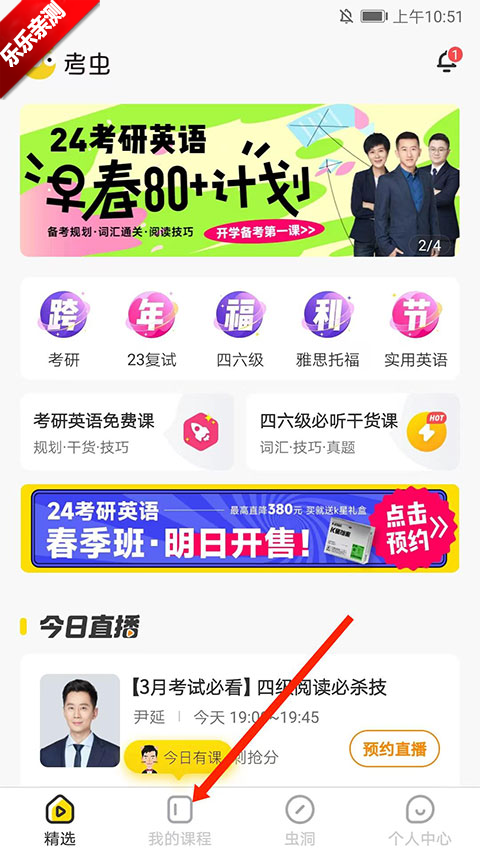 1、打开考虫app最新版,选择下方“我的课程”选项,
