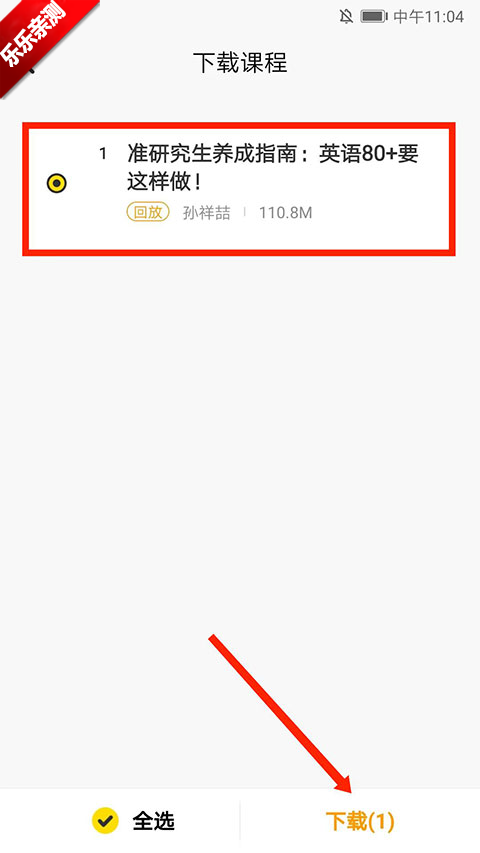 4、然后勾选需要的课程,选择右下角“下载”即可下载课程。