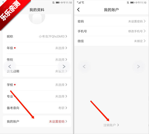 4、进入我的资料界面,选择下方“我的账户”,然后点击“注销账号”选项,