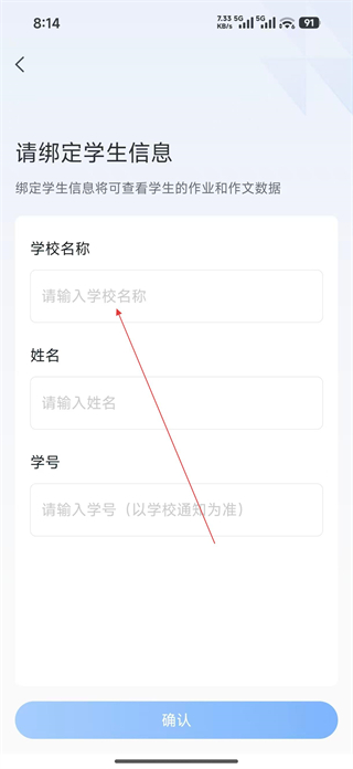 3、选择对应的学校后依次填写姓名学号等信息,点击学校就可以去搜索孩子的学校了。